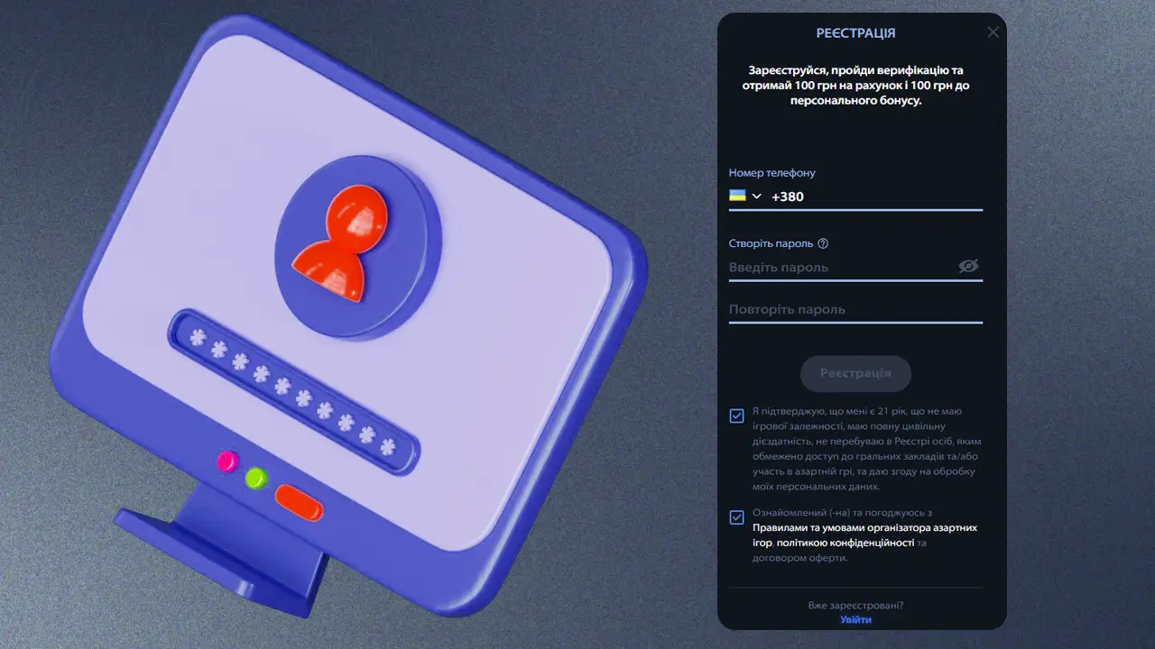 Процес реєстрації дозволяє створити акаунт у кілька хвилин, вибравши спосіб через телефон або email. Після підтвердження SMS або електронної пошти відкривається доступ до всіх ігор, бонусів та особистого кабінету. Реєстрація швидка, зручна та безпечна.